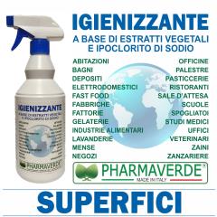 Igienizzante per superfici a base di estratti vegetali e ipoclorito di sodio.
